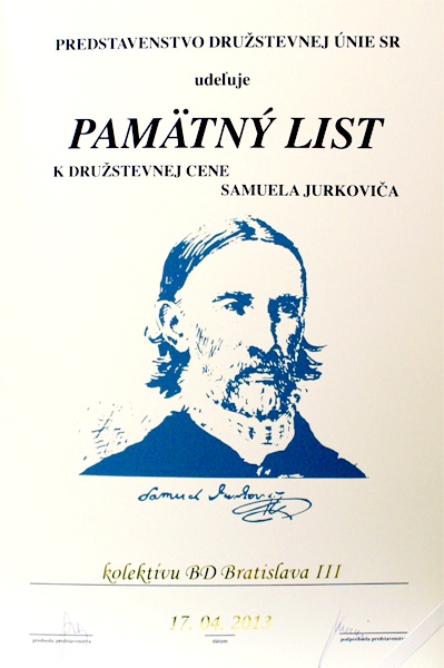 BDBA III dostalo najvyššie družstevné vyznamenanie Družstevnej únie SR za dlhoročnú aktívnu prácu v družstevníctve: